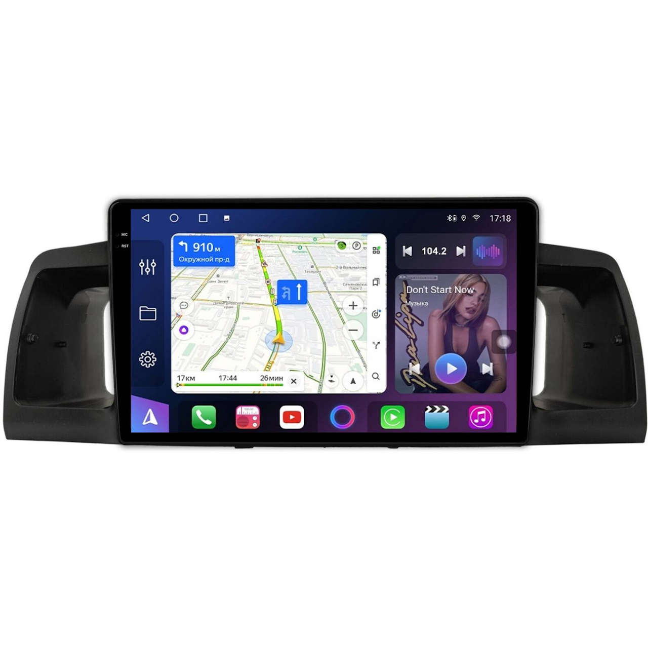 Поддержка навигации с пробками, голосовым набором маршрута и онлайн обновляемыми картами. С Google Play Market можно легко установить любое другое приложение для навигации. Возможность работы навигации и музыки/видео одновременно!