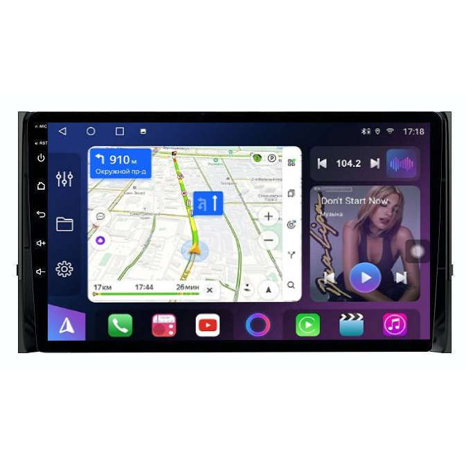 Операционная система Android 14 Экран QLED с разрешением 1280*720 Мощный 8-и ядерный процессор Spreadtrum SC9863 4 ГБ оперативной памяти - устройство работает быстрей Звуковой чип DSP (много настрое звука + улучшенное качество звучания) Разделение экрана - одновременно можно пользоваться навигатором и другим приложением на одном экране Поддержка Яндекс.Навигатора и пробок, а также голосовой поиск Громкая свясь Bluetooth Проигрывание музыки через Bluetooth Audio