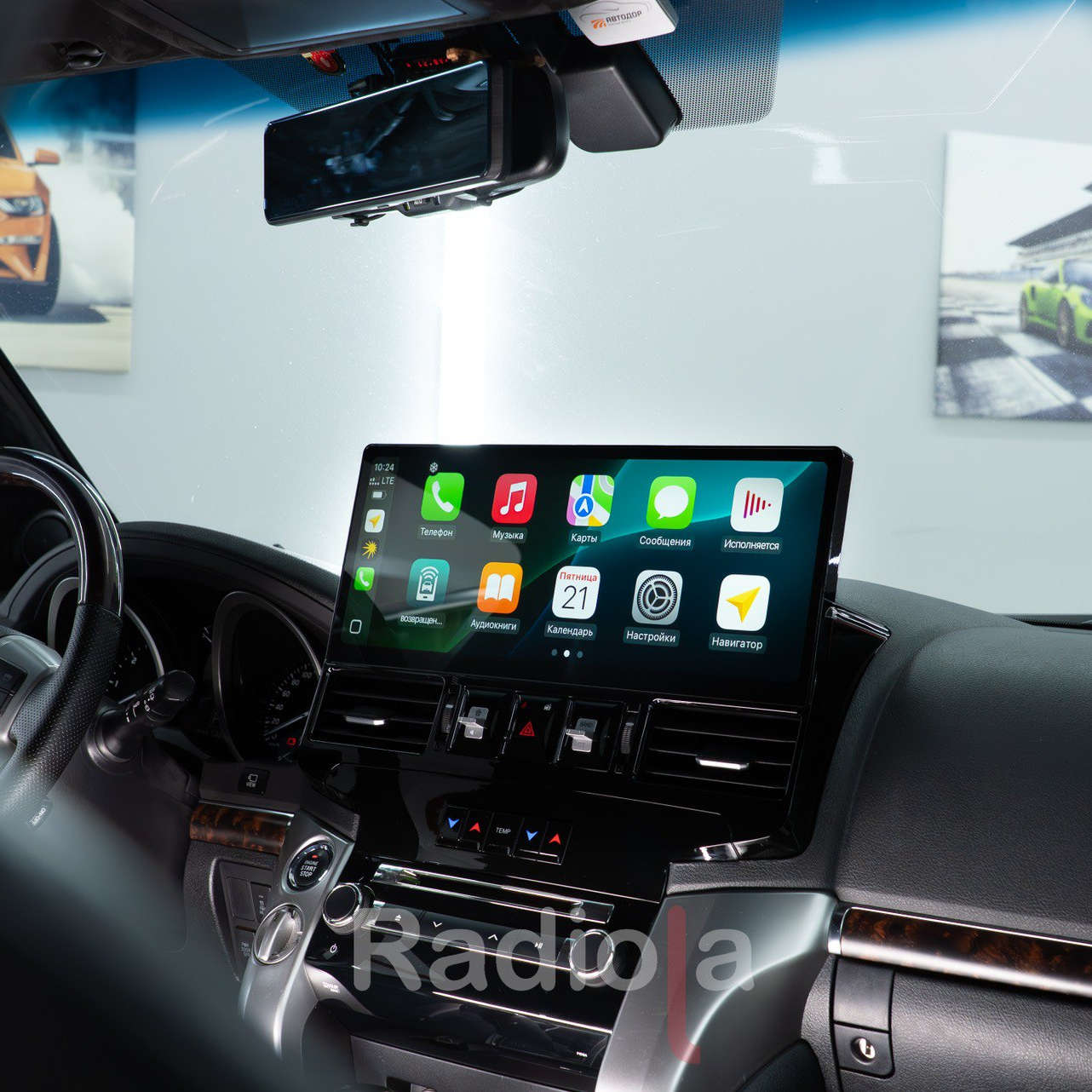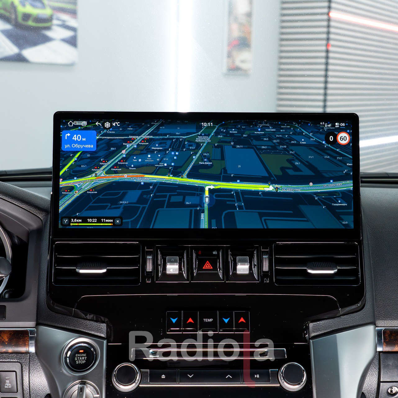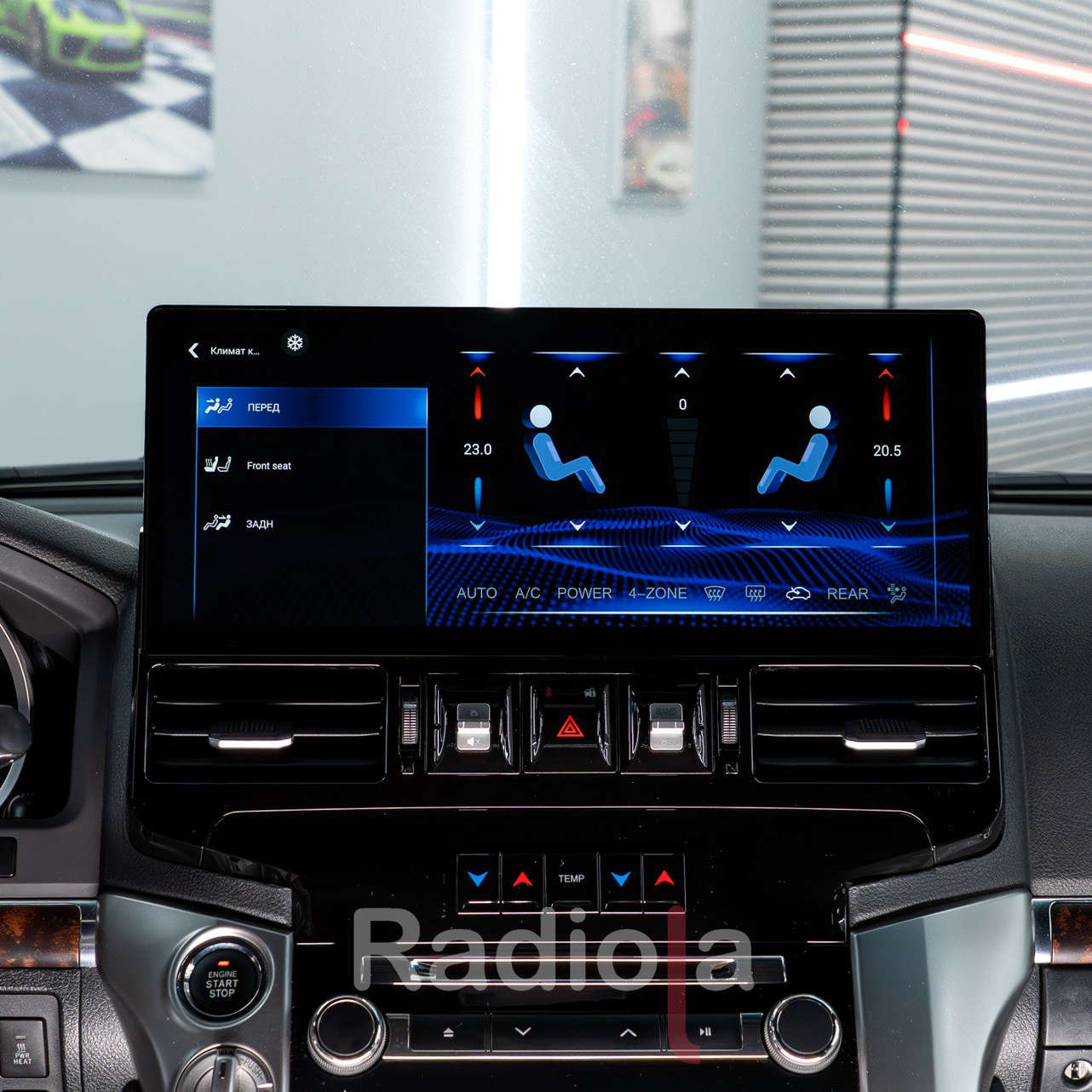 Замена заводского монитора Toyota Land Cruiser 200 2007-2015 на 17-дюймовый емкостный сенсорный экран высокого разрешения (2880х1080) с предустановленной ОС Android 13. Монитор устанавливается в штатное место автомобиля взамен оригинального монитора и органично вписывается в интерьер салона, при этом сохраняются все штатные функции: FM радио, работа кнопок на руле, штатная камера заднего вида, парктроник и т.д…