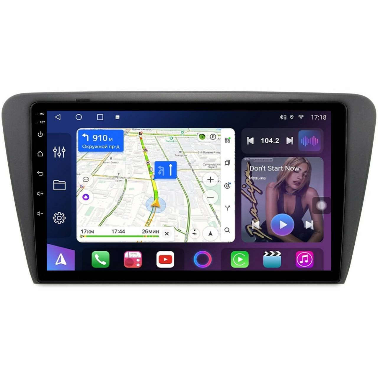 Операционная система Android 14 Экран QLED с разрешением 1280*720 Мощный 8-и ядерный процессор Spreadtrum SC9863 4 ГБ оперативной памяти - устройство работает быстрей Звуковой чип DSP (много настрое звука + улучшенное качество звучания) Разделение экрана - одновременно можно пользоваться навигатором и другим приложением на одном экране Поддержка Яндекс.Навигатора и пробок, а также голосовой поиск Громкая свясь Bluetooth Проигрывание музыки через Bluetooth Audio