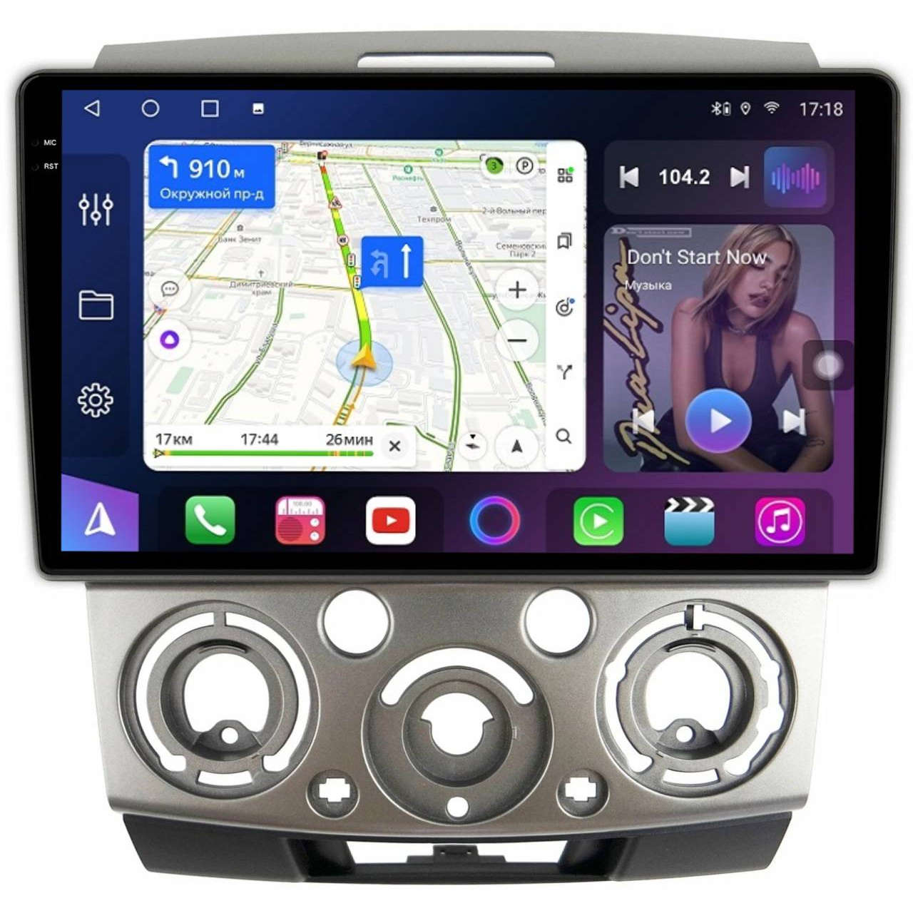 Поддержка навигации с пробками, голосовым набором маршрута и онлайн обновляемыми картами. С Google Play Market можно легко установить любое другое приложение для навигации. Возможность работы навигации и музыки/видео одновременно!