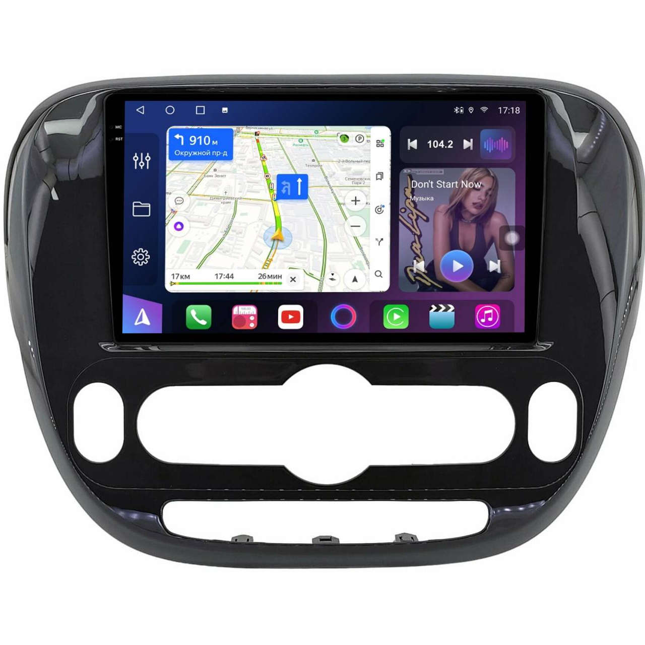Поддержка навигации с пробками, голосовым набором маршрута и онлайн обновляемыми картами. С Google Play Market можно легко установить любое другое приложение для навигации. Возможность работы навигации и музыки/видео одновременно!